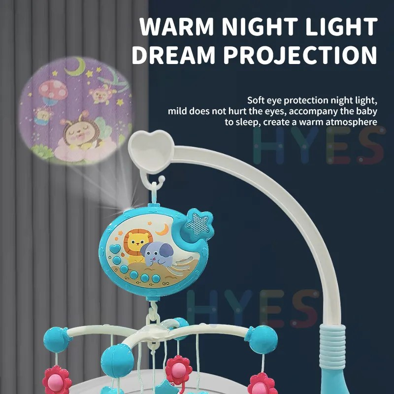 arusel Muzical pentru Patut Bebe, cu proiector, muzica si lumini, jucarii detasabile, Albastru
