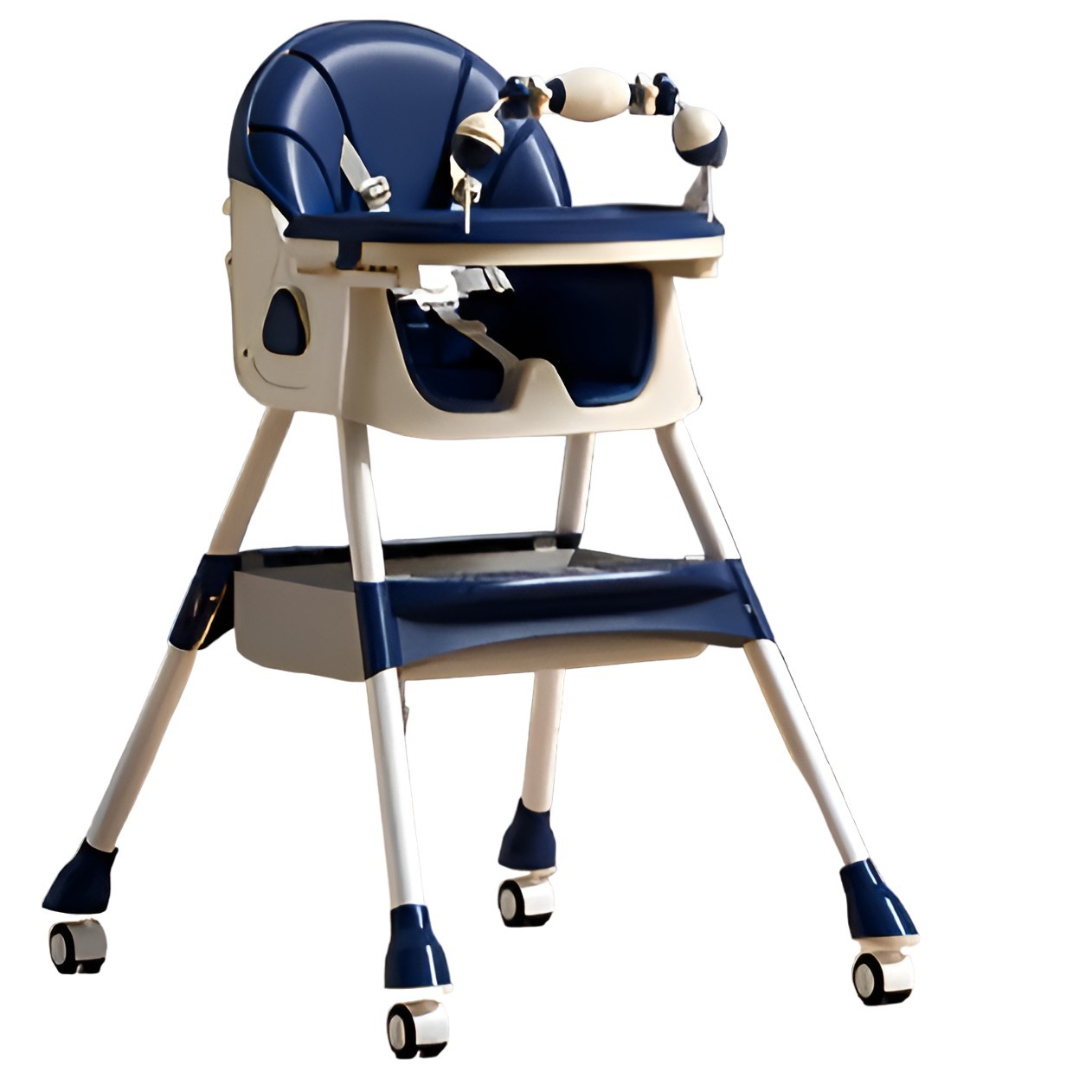 - Compartimentul de depozitare si cele două farfurii sunt detașabile și ușor de curățat: Scaunul vine cu o tavă dublă detașabilă, cu mai multe niveluri, realizată din material alimentar. O tavă canelată în partea de sus pentru sticle sau tacâmuri și o tavă în partea de jos pentru jucării. În coșul de depozitare puteți plasa obiectele ale bebelușului. Tava și coșul de depozitare sunt detașabile și ușor de curățat.
